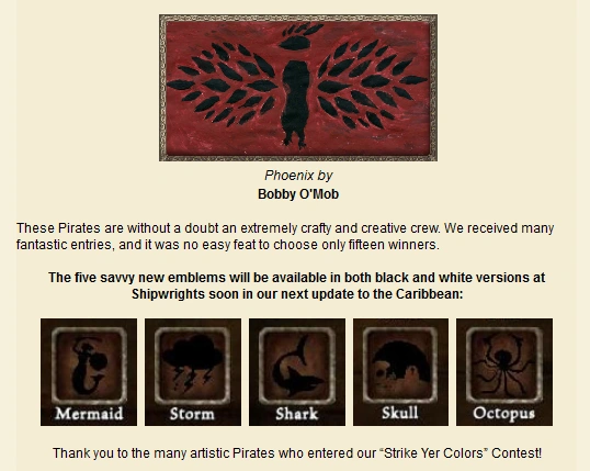 - Their winning emblem design brought to life as an actual in-game item that Pirates can use to customize their sails and “strike their colors” on the high seas