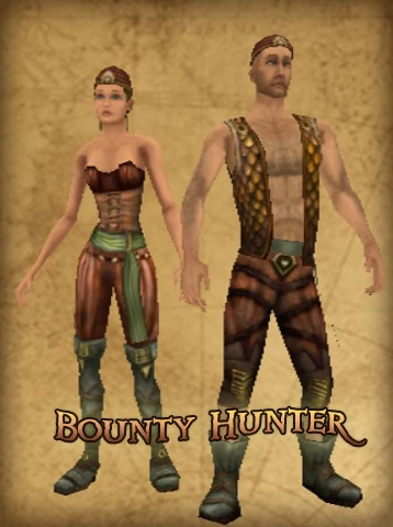 Bounty Hunter is an outfit offered for purchase by Peddlers on Padres Del Fuego, Cuba, Port Royal, Tortuga, and Bilgewater. The outfit was first leaked the morning of October 1st, but was taken down and later released as a 5th Anniversary outfit on October 10th. It was leaked an additional second time on October 23rd as well.