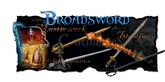 Game Note: The broadsword is a very powerful type of sword only available to Unlimited access members. A broadsword has the longest blade out of all sword types. It can strike several nearby enemies at the same time with its combos, much like the Sweep skill. This make them very useful for boarding flagships on your own.