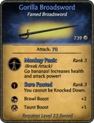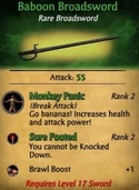 Do you enjoy forgetting everything about civilization and jumping around like a maniac? Monkey weapons all have the Monkey Panic ability, which lets you go into a frenzy, roar like a gorilla and attack your enemies with primal fury! They also have the Sure Footed ability, which prevents you from being knocked to the ground. Most useful when fighting Stumps.