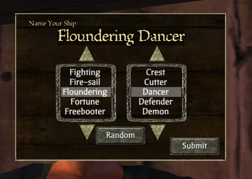Once you've picked your ship, you will be prompted to christen it with a name. Just pick a first and last name from the two lists.