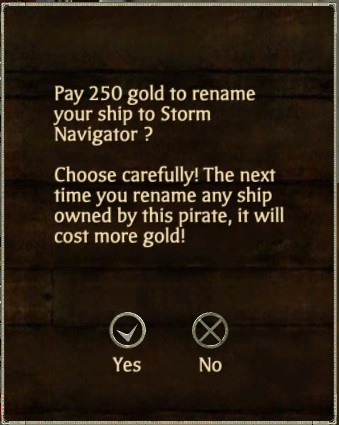 In The Legend of Pirates Online, a feature was added to allow pirates to rename their ship.