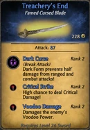 Dark Curse is a defense oriented hex that halves the damage received from incoming melee and ranged attacks. While in this form (Although not stated on skill description) gives the user a 20% attack boost for the duration of the effect. Very similar to the Lost Sword of El Patron's Ghost Form. Unlike Ghost Form, Dark Curse lasts for 20 seconds instead of 12, and changes your pirate into an orange Ghost instead of a green Ghost.