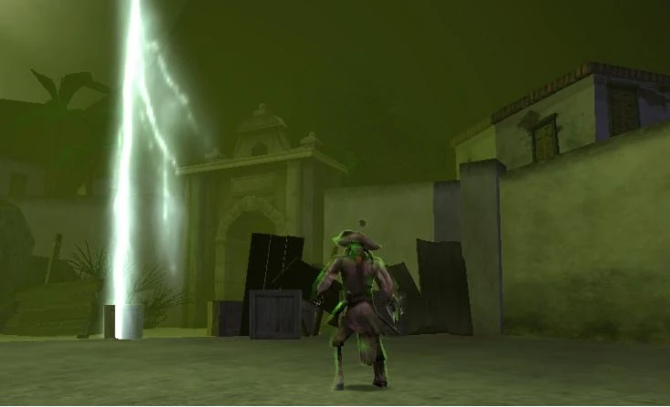 Dark Thunderbolt is a very powerful Voodoo Hex used by Jolly Roger. He has been witnessed using it against pirates fighting him during Invasions. This attack used to be an actual hex available for staffs in 2007, but was replaced with Pestilence. It has a VERY long range, striking pirates as immediate reprisal for attacking him. It strikes with deadly accuracy (the chance is smaller if there are many pirates attacking Jolly Roger at the same time). Victims can be struck by damage ranging over 2,000 health points in a single blow. The amount of damage done depends on the number of players taking part in the invasion. The greater the number of attackers, the higher the damage received.