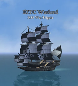 The Warlord is a class of War Frigate in service of the East India Trading Company. This vessel carries seven deck cannon and ten broadside cannons on each side.