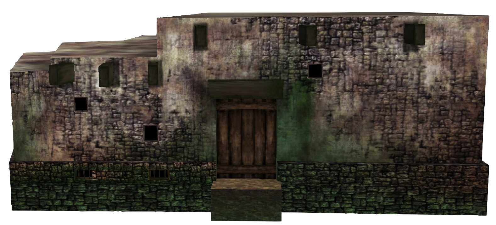 A typical Jail is a building made out of stone bricks and lit with torches. The jail cells are down in the basement or the basic room of the Jail. It is usually watched over by a sleeping Navy Soldier.