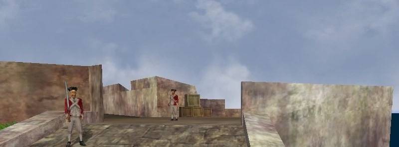 The walled pathway connects the Barracks and the Armory together. A handful of Navy veterans and officers, and a couple of EITC Grunts can be found here. They are guarding the entrance, though once inside, the pirate will be unable to take anything or even search the contents.