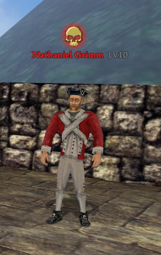 Nathaniel Grimm is a Royal Navy Marine Boss in service of the King. He is stationed primarily on Port Royal and Tortuga but has appeared at the gate into Kingshead