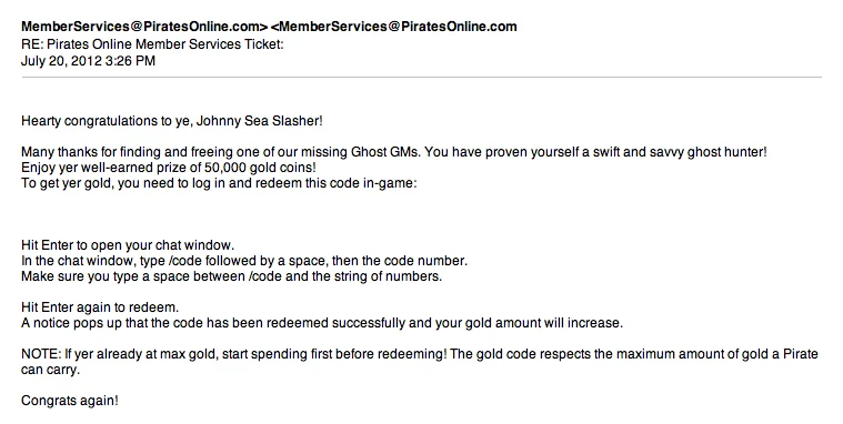 July 20th - The Great Caribbean Ghost Hunt Winners Email[]