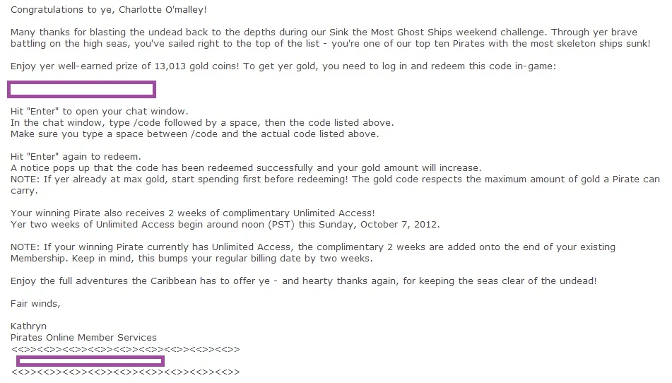 October 5th - Sink Skeleton Ships Winners Email[]