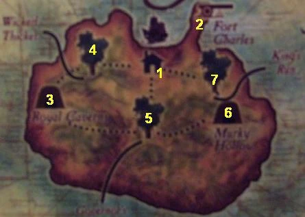 Governor's Garden [5] - The area behind Elizabeth Swann's family home is filled with relatively weak Undead, some basic critters and a couple of low-level Navy; it is similar to the Tortuga Graveyard. This spot is usually just a walk-thru to the Royal Caverns or Murky Hollow unless you're looking for a specific enemy.