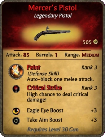 | Unique Loot | Mercer's Pistol |