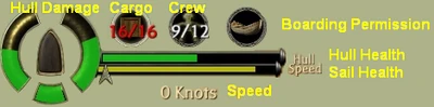 Chain Shot will directly affect your sails and masts, while other types damage your ships hull. You can track your ship's health in the upper-left corner of your screen. You and your crew have the ability to stop and Repair battle damage at sea, otherwise you will have to port and have a Shipwright do the work.
