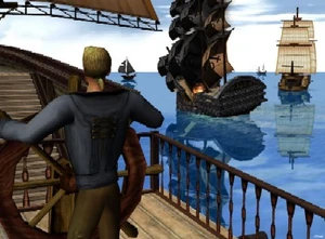 For the pirate, there are different kinds of enemy ships: Royal Navy, EITC, skeleton ships and later Bounty Hunter ships. The Navy and EITC sail a broad variety of ships, while Jolly Roger's forces use War Frigates or War Sloops used by French and Spanish Undead.