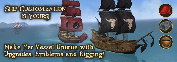 Ship Customization is a game feature which allows players to customize their own ships. Players may do this by visiting any shipwright and choosing the "Upgrade" option, then choosing a ship to upgrade. Ships can have visually customizable hulls, rigging, sails, emblems, and special broadsides (hull ranks 4-6 only). Only Medium and War Class Ships are able to be customized. Light Class Ships and Ships of the Line are unable to be customized.