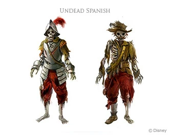 The Spanish Undead sailors who lost their lives in combat with the French have risen again as Jolly Roger's servants. However, these loyal Spaniards would much rather carry on their fight with the French Undead. Unlike the French who use foils, they all use dual cutlasses!