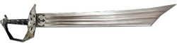 - In the movie - as well as in pictures released by the game developers - the hilt of the sword features red "dots" or rubies. On the original in-game version, they appeared to be either black or missing. This was changed in TLOPO, where the rubies are now quite apparent.