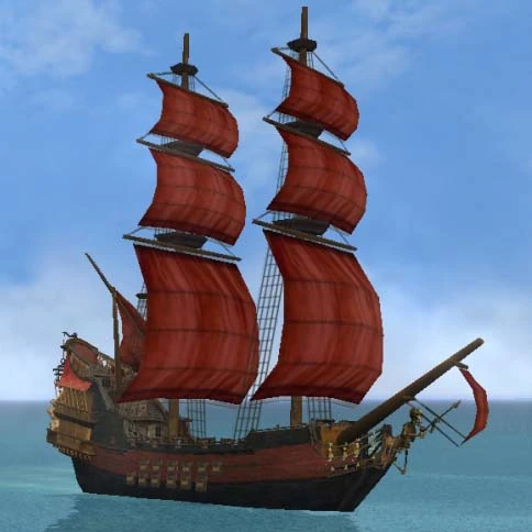 The Queen Anne's Revenge, often simply referred to as the Revenge, or in-game as QAR, is the legendary and infamous ship captained by the notorious pirate Edward Teach, better known as Blackbeard. She appears as a Level 39-41 Legendary Ship with 12 broadside cannons and 8 cannons on deck. She uses powerful Round Shot for both deck guns and broadsides, capable of sinking a war frigate in a single volley, if it has no armor. The Queen Anne's Revenge is smaller, slimmer and more agile than other War-class ships. She can also reload broadsides incredibly quickly. The ship appears randomly circling around Isla Perdida, Isla Tormenta, and Isla Cangrejos. This Legendary Ship is different from all other ships as she doesn't come straight at you, she will always have her broadsides facing the ship attacking her.